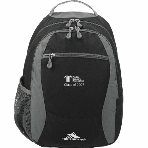 With a spacious, front-loading main compartment and an additional organizer compartment, the High Sierra Curve Backpack is designed for convenience. Its front zippered accessory pocket includes a headphone port and provides you with additional storage, while its gusseted side mesh pockets hold water bottles for on-the-go hydration. The Curve Backpack has a padded back panel and cushioned shoulder straps with a built-in smartphone pocket. Wear the backpack using the comfortable straps, or carry it easily using the heavy-duty grab-handle. Logo is Embroidered.